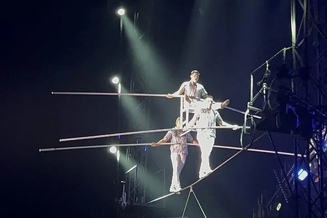 We were impressed by the Faltyny family and their dexterity at juggling while on a high one-wheel bike. My sons’ favorite was Martii and Liina amazing archery exhibition. This section keeps one of the edge of their seats. Talking of feeling the pressure of the performers, audiences won’t be able to wait to discover the Meza troupe as they challenge the laws of gravity walking, jumping, and more balanced on a cord high above the head. The strength of aerialist Liina, perfectly controlling her rope stunts, is something to be seen. She is a true Amazon; a wonder woman of our time and we salute her courage and her athletic stature.