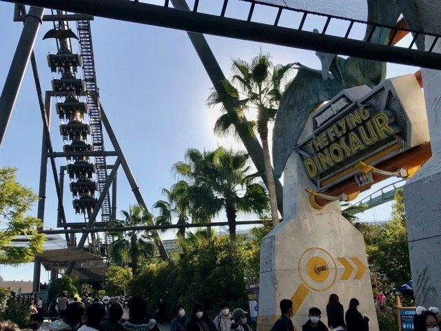 Something that was very ground breaking was “The Flying Dinosaur” ride, which also can only be found in Japan! This was by far the most extreme ride this reviewer has ever ridden. It truly makes one feel like they are flying. At the beginning of the ride, it turns you horizontal!